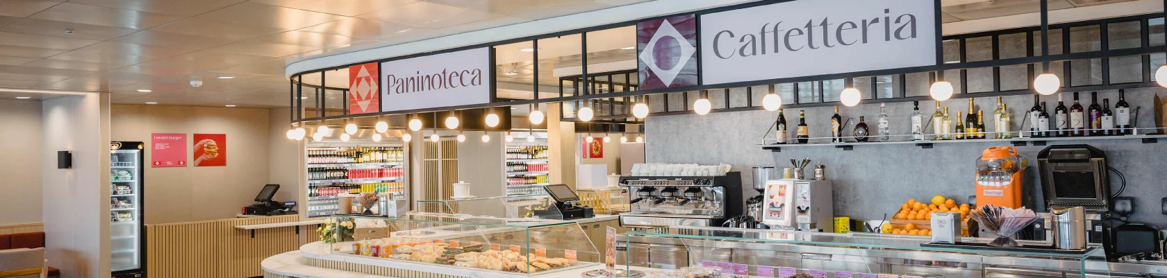 A bordo delle nostre navi potrai usufruire di un eccellente servizio caffetteria, ideale per colazioni, pause caffè e aperitivi.